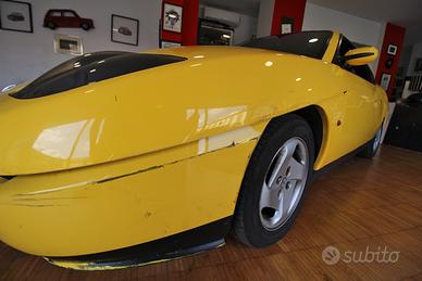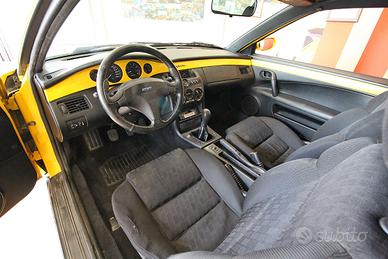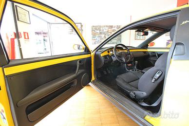 Oggi vi presentiamo una splendida Fiat Coupe 1.8 Giallo Ginestra. La Coupè era estremamente ricercata nello stile dei dettagli: La Fiat Coupé si distingue per lo stile aggressivo e originale firmato da Chris Bangle (con interni curati da Pininfarina), caratterizzato da dettagli unici come il "cofango" che integra cofano e parafanghi, la fascia della plancia in tinta con la carrozzeria e le quattro luci posteriori rotonde ispirate alle Ferrari, oltre al tappo del serbatoio cromato a vista. Questa Coupè appartiene ha un solo proprietario comprata a Torino. Abbiamo a disposizione persino la fattura d'acquisto originale della Torino Auto Fiat con la lista degli optionals come aria condizionata (1.996.387,00 L) ABS (1.773.109,00 L) predisposizione autoradio (302.521,00 L) tergilunotto posteriore (218.457,00 L) ruote in lega + pneumatici maggiorati ( 890.756,00 L) air bag passeggero (352.941,00 L) ed infine i tappettini (25.000,00 L). I km sono originale con tutti i lavori di manutenzione presenti contabilizzando 92000 km. Esteticamente ha dei difetti evidenti su foto. è una in condizioni medie.
