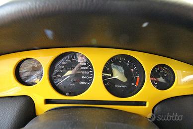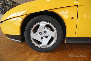 Oggi vi presentiamo una splendida Fiat Coupe 1.8 Giallo Ginestra. La Coupè era estremamente ricercata nello stile dei dettagli: La Fiat Coupé si distingue per lo stile aggressivo e originale firmato da Chris Bangle (con interni curati da Pininfarina), caratterizzato da dettagli unici come il “cofango” che integra cofano e parafanghi, la fascia della plancia in tinta con la carrozzeria e le quattro luci posteriori rotonde ispirate alle Ferrari, oltre al tappo del serbatoio cromato a vista. Questa Coupè appartiene ha un solo proprietario comprata a Torino. Abbiamo a disposizione persino la fattura d’acquisto originale della Torino Auto Fiat con la lista degli optionals come aria condizionata (1.996.387,00 L) ABS (1.773.109,00 L) predisposizione autoradio (302.521,00 L) tergilunotto posteriore (218.457,00 L) ruote in lega + pneumatici maggiorati ( 890.756,00 L) air bag passeggero (352.941,00 L) ed infine i tappettini (25.000,00 L). I km sono originale con tutti i lavori di manutenzione presenti contabilizzando 92000 km. Esteticamente ha dei difetti evidenti su foto. è una in condizioni medie.