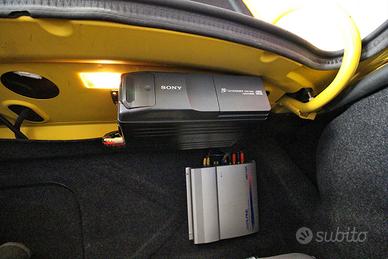 Carrozzeria colore Giallo Ginestra, interni in Stoffa neri con motivi grigi a rombi, nera, moquette nera e cruscotto in tinta carrozzeria giallo ginestra.