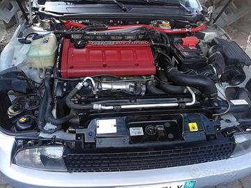 Modello Turbo PLUS, 6 marce, caratterizzato da accensione a pulsante, strumenti a fondo bianco, sedili Recaro a guscio (ancora perfetti), volante, maniglie e cambio in pelle nera con cuciture rosse originale e senza difetti; cerchi 16" Speedline a doppia razza con pneumatici da 225 a libretto; testa motore colore Rosso (originale non-riverniciato); barra duomi Sparco rossa e specifico kit aerodinamico originale. auto UNICO PROPRIETARIO, ITALIANA, acquistata dal concessionario Fiat ad agosto 1999 per 60milioni di Lire, completamente ORIGINALE, col suo catalizzatore, la sua marmitta...ed ovviamente chilometraggio originale fatto personalmente e non da altri proprietari quindi certo e dichiarabile per iscritto. Tutta documentazione disponibile, manuale istruzioni, fattura originale d'acquisto ed ogni cosa.