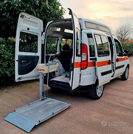 vendo Fiat Doblò 1.9 jtd multijet 120cv Tetto Alto Trasporto disabili, unico proprietario, colore bianco (la striscia arancio è solo adesiva ed eventualmente rimovibile), anno 2010, equipaggiato con climatizzatore, vetri elettrici, servosterzo, chiusure centralizzate, autoradio, sensori di parcheggio, tenuto molto bene in relazione all' età, ottime condizioni di carrozzeria e interni, doppie chiavi, manuali di bordo, revisione in regola, gommato, allestito regolarmente a libretto per trasporto disabili con sollevatore a pedana elettroidraulica, omologato sia 5 posti a sedere sia 3 posti più carrozzina vendo Euro 10950 piu' passaggio (ridotto per aventi diritto) per info Andrea tel Consulta il nostro shop su questo sito: abbiamo altre proposte di veicoli allestiti per questo tipo di mobilità Attenzione, le Nostre vetture sono visibili esclusivamente previo appuntamento telefonico Disponibile servizio di trasporto a domicilio su bisarca in tutta Italia a partire da 300 Euro