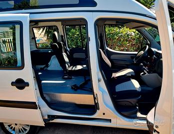 vendo Fiat Doblò 1.9 jtd multijet 120cv Tetto Alto Trasporto disabili, unico proprietario privato pochissimi km, colore bianco, anno 2009, equipaggiato con climatizzatore, vetri elettrici, servosterzo, chiusure centralizzate, autoradio, ottime condizioni di carrozzeria e interni, doppie chiavi, manuali di bordo, revisione in regola, gommato, allestito regolarmente a libretto per trasporto disabili con sollevatore a pedana elettroidraulica infrapianale a scomparsa, omologato 3 posti più carrozzina vendo Euro 12950 piu' passaggio (ridotto per aventi diritto) per info Andrea tel Consulta il nostro shop su questo sito: abbiamo altre proposte di veicoli allestiti Attenzione, le Nostre vetture sono visibili esclusivamente previo appuntamento telefonico Disponibile servizio di trasporto a domicilio su bisarca in tutta Italia a partire da 300 Euro