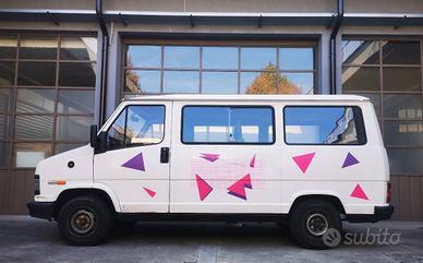 Omologato 9 posti ora monta i tre anteriori e la panca posteriore per un totale di 6 così da avere un ampio vano di carico posteriore, ideale anche per camperizzazione, immatricolato come trasporto persone e cose non paga il bollo assicurazione ridotta e passaggio di proprietà con costo di euro 250.