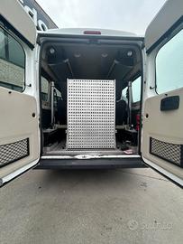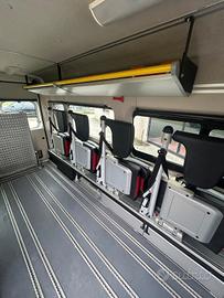Pulmino 9 posti omologato per trasporto disabili con la seguente configurazione attuale: 2 posti in cabina e 7 sedili posteriori con sistema speciale di ripiegamento (consente di inibire la seduta senza doverla staccare).