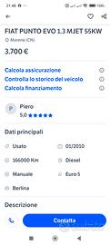 Adatta a neopatentati Meccanica perfetta Interni e carrozzeria buoni Monta un treno di gomme invernali (battistrada al 50%) su cerchi in ferro Fornisco anche un treno di gomme estive (70%)su dischi in lega originali FIAT Bollo pagato fino al 12/2026.