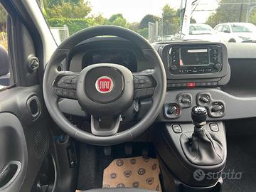 Airbag guida, Airbag passeggero, Alzacristalli elettrici anteriori, Appoggiatesta anteriori anticolpo di frusta, ASR, Bluetooth, Calotte specchi retrovisori esterni nere, Cambio manuale a 6 marce, Cerchi in acciaio da 14" con logo Panda, Chiusura centralizzata, Climatizzatore manuale con filtro antipolline, Cruise Control, ESP, ESP con ASR/MSR, HBA ed Hill Holder, ESP Controllo di trazione, Filtro antipolline, Frenata autonoma di emergenza, Hill holder, Kit Fix&Go, Lettore pannelli di limitazione della velocità, Lettura dei limiti di velocità, Modanature laterali nere o bianche, Pantina lato passeggero con specchio di cortesia, Paraurti anteriore e posteriore in tinta carrozzeria, Paraurti verniciati, Presa corrente 12V, Radio DAB 5" con Usb e Bluetooth, Regolazione volante, Rilevatore di stanchezza, Seat Belt Reminder su tutti i sedili, Sedile guida regolabile in altezza, Sedile regolabile in altezza, Sedili in tessuto con monogramma FIAT, Segnalazione superamento di corsia, Sensore pressione pneumatici, Sensore temperatura esterna, Sensori di parcheggio posteriori, Sensori parcheggio posteriori, Serigrafia Pandina su terza luce posteriore, Servosterzo, Servosterzo Dualdrive, Specchi retrovisori elettrici chiudibili, Specchietti retrovisori ripiegabili e riscaldabili elettricamente, Start & Stop, Start&Stop, Telecomando apertura/chiusura porte, Termometro, TPMS - Sistema monitoraggio pressione pneumatici, USB, Vetri elettrici, Vivavoce, Window bag (ant.e post.),