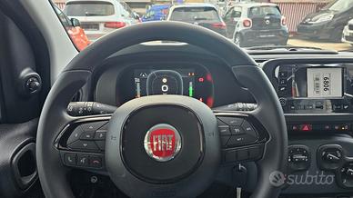 Fiat Panda 1.0 FireFly S&S Hybrid PANDINA ICON KM0, Italiana, nuova ancora incartata e da inizializzare (immatricolata 07/2025), in garanzia casa madre fino a Luglio 2027, adatta a neopatentati. IVA ESPOSTA DEDUCIBILE. E' equipaggiata con i seguenti accessori: carrozzeria in colorazione nero cinema, luci diurne, sensori di parcheggio posteriori, logo 'Pandina' sui fissi posteriori, chiave con telecomando, maniglie e specchietti neri opachi, sedili in tessuto tecnico con trama dedicata al modello e cuciture a contrasto, volante e sedile di guida regolabili in altezza, specchi esterni regolabili elettricamente, vetri anteriori elettrici, cruscotto conta km interamente digitale, autoradio monitor Uconnet 5" vivavoce con ingresso usb e connettività bluetooth smartphone, frenata automatica d'emergenza, controllo elettronico della segnaletica, lane assist, rilevatore stanchezza conducente, cruise control, climatizzatore, start&stop disinseribile, tasto city, controllo di trazione disinseribile, presa di corrente anteriore, kit di gonfiaggio pneumatici. Garanzia inclusa, passaggio di proprietà escluso.