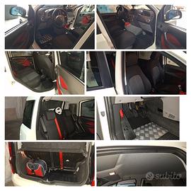 Dotazioni e accessori: sistema Blok System con chiave apertura porte e baule elettrico, pulsante blocco gasolio sotto sedile guida, barra duomi,portaoggetti sotto sedile passeggero, vetri elettrici, chiusura centralizzata, climatizzatore manuale, specchietti retrovisori elettrici, ELD, fendinebbia, airbag, segnalatore acustico cintura, bip superamento velocità, computer di bordo, 5 cinture di sicurezza (inclusa centrale a tetto), maniglie cielo, kit fumatore, autoradio Pioneer con comandi al volante, volante regolabile in altezza, tappezzeria 100HP posteriore regolabile, spostabile e reclinabile, caricatore cellulare, cruscotto bicolore nero/grigio, bocchette aria e stufa cromate, pomello cambio cromato, illuminazione vano portaoggetti e bagagliaio, moquette copristufa e copertura portellone, pannelli porte con colorazione rossa, poggiapiedi Abarth, faretti, barre portatutto, kit xenon, ciglie fari, vetri privacy posteriori, spoiler, doppio scarico estetico, cerchi in lega.