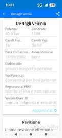 L'auto verrà consegnata con tagliando generale (sostituzione olio e filtri), revisione periodica di legge più ceck generale al veicolo.
