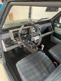 Per quanto riguarda gli interni sono stati sistemati sostituendo le plastiche rotte, rinfrescando sedili e moquette e aggiunto inclinometro. Monta volante a calice con mozzo dedicato ma fornisco il suo originale.