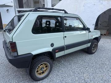 Vendo come da foto Fiat Panda 4x4 a carburatore, 1000 fire, auto in perfette condizioni, usata quotidianamete per andare a lavoro. Sono stati eseguiti diversi interventi di manutenzione: Testine sterzo ( km 178.000) Braccetti ( Km 178.000) Cuscinetti ruota ( km 212.000) Kit distribuzione + pompa acqua + cinghia servizi ( km 213.000) Sostituzione calotta spinterogeno + distributore + modulo spinterogeno Candele e cavi candele Kit frizione (197000km) Sempre tagliandata ogni 10.000 km Oltre i lavori di meccanica, è stata data una ricondizionata a livello dí verniciatura, di sottoscocca e di interni. Sono stati risanati i fondi, quindi auto senza ruggine e mai fatto off road. Sostituito il portello posteriore con uno dei modelli più recenti. Disponibile anche il suo originale. Inoltre è stato aggiunto il tubo di scarico centrale e terminale marmitta in acciaio inox. Disponibile anche il suo originale. Interni rifatti nuovi in similpelle nera… dal quadro strumenti. ai sedili anteriori e posteriori, pannelli laterali in alluminio rivestiti in similpelle nera e moquette nuova. Auto dotata di autoradio con bluetooth, kit mozzi liberi marchio KIK , cerchi in lega dell’epoca ma con gomme a misura da libretto Certificato dí storicità ASI