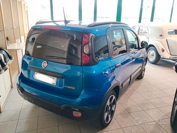 Fiat Pandina 1.0 Hybrid Cross, anno d'immatricolazione 03/2025, km di percorrenza 13.500, colore azzurro Italia, sensori di parcheggio, climatizzatore, fendinebbia, vetri privacy, Car Play, bluetooth, 5° posto, barre longitudinali, fasce laterali, ruotino di scorta, strumentazione digitale.