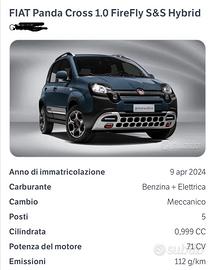 Vendo FIAT Panda Cross 1.0 FireFly S&S Hybrid immatricolata aprile 2024 perfetta, pochi km perchè la propietaria aveva problemi di salute