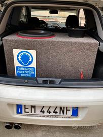 Vetri oscurati, allestimento lounge, sedili in Alcantara, minigonne, paraurti anteriore lisciato, targhe magnetiche etc...