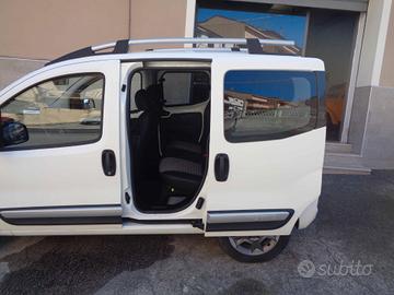 Fiat Qubo 1.3 MJT 80CV, versione Trekking con: 2 porte laterali scorrevoli, ABS, Isofix, Airbag guida, Airbag passeggero, Alzacristalli elettrici anteriori, Appoggiabraccia sedile anteriore, Appoggiatesta posteriori, Barre longitudinali per portapacchi, Chiusura centralizzata con telecomando, Cambio manuale a 5 marce, Cerchi in lega da 15, Climatizzatore manuale, Comandi radio al volante, Correttore assetto fari, Cruise Control, Fendinebbia, Idroguida, Interni in tessuto, Paraurti verniciati, Presa corrente 12V, Regolazione lombare sedile guida, Regolazione volante, Sedile guida regolabile in altezza, Sedile posteriore sdoppiato, Sensore pressione pneumatici, Specchi retrovisori esterni con comando elettrico e disappannamento, Specchi retrovisori esterni verniciati, Sportello vano portaoggetti, Vetri privacy, Kit Trekking, Radio bluetooth touchscreen da 5 pollici, Ruota di scorta, ecc.