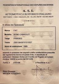 Fiat Ritmo 100 Supercabrio 100 cavalli unico proprietario con soli 7600 Km. dimostrabili, sempre al chiuso, mai esposta al sole o pioggia, prima vernice tutta rigorosamente originale, appena eseguito tagliando e distribuzione.