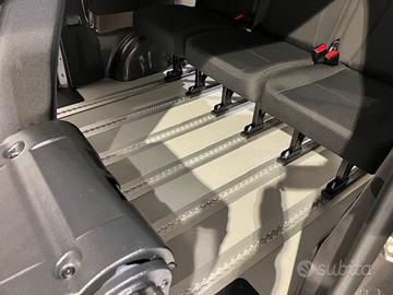 La configurazione è caratterizzata dalla nuova pavimentazione con guide in alluminio incassate a filo del rivestimento che permettono una maggiore modularità dell’allestimento e il ripristino dei sedili a sgancio rapido.