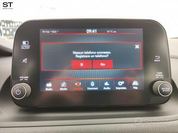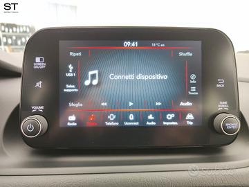 Optional: - Appoggiatesta posteriori - Filtro anti particolato - Speed limiter - TPMS (sistema di monitoraggio pressione pneumatici) - Paraurti in tinta carrozzeria - 6 airbags - Interni in tessuto nero con monogramma Fiat - Cornice della griglia anteriore e inferiore nero lucido - Volante e pomello cambio con rivestimento soft touch - Intelligent speed assist e Traffic sign recognition - Calotte specchietti in tinta carrozzeria - Quadro strumenti da 3,5" - Kit riparazione pneumatici Fix & Go - Cerchi in acciaio da 15" - ESC+Hill Holder+ABS - Tasche retroschienale - Start&Stop - Telecomando apertura/chiusura porte - Comandi radio al volante - Presa di corrente 12V - Autoradio - Radio DAB 5" (no touch) - Bluetooth - Correttore assetto fari - Sedile guida regolabile in altezza - Bracciolo sedili anteriori - Chiave con transponder - Immobilizzatore - Bloccaporte elettrico - Riconoscimento pedone - Pretensionatore cinture - Attention assist - Frenata autonoma di emergenza - Lane Control - Lane keeping assist - Sensore temperatura esterna - Cruise Control - Cambio manuale a 6 marce - Climatizzatore manuale - Alzacristalli elettrici anteriori - Alzacristalli elettrici posteriori - Specchi retrovisori esterni con comando elettrico e disappannamento - Sensori di parcheggio posteriori - Telecamera di parcheggio - Servosterzo - Volante regolabile in altezza e profondità