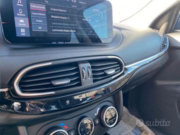 Climatizzatore automatico, Tasche Retroschienale, Sedile guida regolabile in altezza, Sedile passeggero regolabile in altezza, Volante regolabile in altezza e profondità, Bracciolo anteriore, Bracciolo posteriore, Sedile posteriore sdoppiato/abbattibile, Regolazione lombare su sedile guida, Active Grill Shutter, Sensore Temperatura Esterna, Sovratappeti, Kit Fix & Go, Cornice della griglia anteriore e inferiore nero lucido, Cross look con finiture specifiche, Finiture esterne in cromo satinato color ghiaccio: skid plate, minigonne laterali, maniglie porte, inserti griglia inferiore e cornice fendinebbia, Volante e pomello cambio con rivestimento soft touch, Telecomando apertura/chiusura porte, Bloccaporte elettrico, Quadro Strumenti Digitale Tft 7" A Colori, Uconnect 10,25" touchscreen radio tablet, dab, mp3, bluetooth, Comandi Radio Al Volante (Radio Touchscreen), Ricarica wireless per smartphone, Cerchi in lega cross da 17" diamantati con pneumatici 215/55 R17, Porta USB posteriore, Presa di corrente 12V, Carplay / android auto, Start&Stop, Paraurti in tinta carrozzeria, Specchietti a regolazione elettrica, Specchi retrov. est. con com. elettr. e disappannamento, Specchietti Retrovisori In Tinta Carrozzeria, Barre sul tetto nere, Luci a LED posteriori, Fendinebbia, Sensore crepuscolare (accensione automatica proiettori), Fari abbaglianti adattivi, DRL Led, Interni in tessuto nero con monogramma fiat, Pack comfort, Pack style plus, Pack tech,
