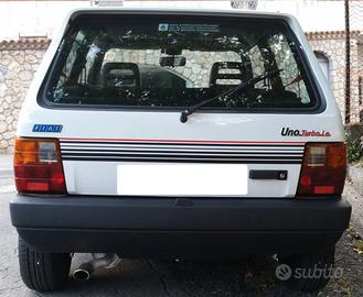 Vendo splendida Fiat Uno Turbo i.e. MK1, immatricolata 05/1989, 100000 km percorsi, tenuta da amatore, tagliandata e perfettamente funzionante, mai incidentata, mai elaborata, carrozzeria ed interni in ottime condizioni, motore completamente originale, tettuccio apribile, libretto uso e manutenzione a corredo. Un valore aggiunto è la garanzia anticorrosione di 6 anni (da notare l'adesivo sul lunotto posteriore) che sta ad indicare uno specifico trattamento alla carrozzeria da parte della casa madre, accorgimento fondamentale per l'epoca, considerata la tendenza di queste vetture a marcire specialmente in corrispondenza dei duomi. Targhe EUROPEE. Per ulteriori informazioni non esitate a contattarmi. ASTENERSI CURIOSI, PERDITEMPO e SOGNATORI. Garantisco e pretendo massima serietà.