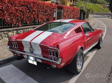 Mustang Fastback del 1967 V8 colore Candy Apple Red con stripes bianche, tutta originale matching numbers, rombo da vera muscle car, linea e cromature inconfondibili, un'autentica icona del sogno americano. Auto d'interesse storico iscritta ASI e vincitrice di numerosi concorsi, eseguiti lavori di rifacimento del fondo, revisione completa del motore e del carburatore nel 2014 (documentabili con book fotografico), cambio automatico a tre rapporti, VIN originale in base al quale è stato fornito il Marti Report che certifica le caratteristiche di fabbrica dell'auto quali:
