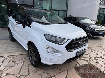 Climatizzatore A Controllo Automatico, Vano portaoggetti sotto il sedile passeggero, Sedile guida regolabile a 6 vie (in altezza e profondità), Sedile lato guida con supporto lombare regolabile, Volante ergonomico in pelle regolabile in altezza e profondità, Bracciolo guidatore, Tappetini anteriori e posteriori con logo sport, Fold Flat System - sedili posteriori abbattibili 60/40, Pomello del cambio rivestito in pelle, Keyless Entry, Keyless Start, Kit Riparazione Pneumatici, MyKey, Allarme perimetrale, Chiusura centralizzata con comando a distanza, Sospensioni sportive, Sync3 con radio touchscreen NAV8" e 7 speakers, Computer di bordo, Computer di bordo con schermo da 4,2" a colori, Cerchi in lega da 17'' bruniti ST-Line, Doppia presa di corrente 12V (anteriore e posteriore), Start&Stop, Tetto a contrasto, Retrovisori elettrici ripiegabili e riscaldati, in tinta carrozzeria e con indicatori di direzione integrati, Barre "Black" longitudinali sul tetto, Fari fendinebbia anteriori con dettagli cromati, Fari automatici on/off, Fari a LED diurni, Interni in pelle parziale, Anti-lock Braking System - ABS (frenata antibloccaggio), EBD (ripartitore elettronico della frenata), 7 AIRBAG (frontale/laterale guidatore e passeggero- a tendina anteriore e posteriore, ginocchia conducente), Electric Power-Assisted Steering - EPAS servosterzo elettrico, ESC (controllo elettronico della stabilità) + TCS (controllo elettronico