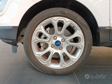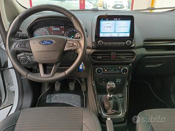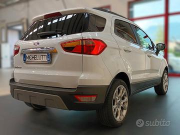 Ford Ecosport usata. Motore 1.0 ecoboost 125 cv. Allestimento Titanium. Cambio manuale, del novembre 2021 con 32.800 km. Completa di clima, cerchi in lega e sensori di parcheggio posteriori. Ideale come auto usata rialzata.
