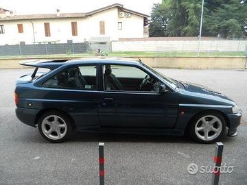 FORD ESCORT RS TURBO COSWORTH 4X4 T35 dell'Aprile 1994, una delle ultime prodotte, vettura rara di interesse collezionistico e storico di sicura rivalutazione nel tempo, è possibile iscriverla all'ASI come auto storica per poter usufruire di alcuni vantaggi come bollo, assicurazione. Targhe bianche e libretto originali di prima immatricolazione, solo 3 proprietari di cui l'ultimo dal 1998, percorsi solo km. 60.000 reali. Carrozzeria di colore verde petrolio (mallard green), ancora prima verniciatura, mai incidentata e sanissima, interni in tessuto grigio originali ed in perfetto stato. Accessoriata con cechi in lega, vetri elettrici, disponibili molle ribassate x assetto sportivo da montare. Condizioni veramente pari al nuovo, molto difficile trovarne una in queste condizioni, usata sempre solo in strada con la massima cura. Pronta per un uso immediato ed a posto con la revisione biennale. Prezzo impegnativo, trattativa solo dopo visione. Questa vettura è stata pubblicata con ampia prova su strada di 8 pagine e con tantissime foto sulla rivista Automobilismo d'Epoca di Gennaio 2020. Passaggio di proprietà escluso dal prezzo.