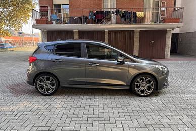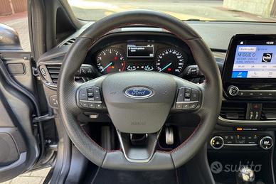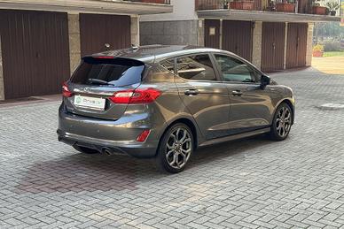 PERIZIA DELL'ESPERTO PRIVACAR: Splendida Ford Fiesta presentata in ottimo stato. Vettura UNICO PROPRIETARIO certificato, il quale vende per cambio segmento. Riposta sempre in box e tenuta con cura, nessun lavoro da fare. In allestimento ST-Line troviamo dotazioni come: sensore luci, sensore pioggia, cruise control & limitatore di velocità, lane assist, keyless start, infotainment con CarPlay/Android Auto, climatizzatore automatico, sedile guida regolabile in altezza, bracciolo, sensori di parcheggio posteriori, cerchi in lega da 17", ruota di scorta e tante altre. Gomme 4stagioni in buono stato. Vettura proposta con la garanzia di conformità legale per 12 mesi inclusa.
