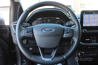 accessori: ABS con EBD e EBA,Active Grill Shutter,Airbag a tendina anteriori e posteriori,Airbag frontale/laterale lato guidatore e passeggero,ESC + TCS,Alzacristalli elettrici anteriori e posteriori,Antifurto meccanico BLOCK SHAFT,Attacchi di sicurezza Isofix integrati nei sedili posteriori esterni,Cambio manuale a 5 marce,Cerchi in lega 16" Titanium Design con pneumatici estivi 195/55R16,Chiusura centralizzata,Clacson bi-tonale,Climatizzatore a controllo automatico EATC,Computer di bordo con schermo da 4.2",Console centrale con porta bicchieri vano portaoggetti e bracciolo,Cruise control con limitatore di velocità,EPAS servosterzo elettrico,ESC + TCS,ESP,Fari abbaglianti automatici,Fari anteriori anabbaglianti a LED automatici,Fari fendinebbia a LED con funzione cornering,Fari posteriori a LED,Fordpass Connect modem 4G,Griglia anteriore-superiore e linea cintura cromate,Hill Start Assist,Interni in tessuto Kasbah,Kit riparazione pneumatici,Lane Departure Warning e Lane Kneeping Aid,Luci diurne a LED,Modalità di guida selezionabile Normale/Eco/Sport,Modanatura portiere cromate,My Key chiave personalizzabile,Parasole conducente e passeggero con illuminazione,Paraurti anteriore in tinta carrozzeria,Poggiatesta anteriori e posteriori 3 regolabili in altezza,Pomello del cambio rivestito in pelle,Predisposizione PADI - disattivazione airbag passeggero anteriore,Retrovisori riscaldabili regolabili e ripiegabili elettricamente in tinta carrozzeria,Sedile conducente regolabile in altezza,Sedili posteriori abbattibili 60/40,Sensori di parcheggio posteriori,Sistema di monitoraggio della stanchezza del conducente,Speed Sign Recognition,Spoiler posteriore,Start & Stop,SYNC 2.5 con radio touch TFT 8" e 6 speakers + DAB + USB + Mirroring Apple/ Android,Tappetini anteriori e posteriori,TPMS Sistema monitoraggio pressione pneumatici,Vano portaoggetti illuminato,Vernice metallizzata MOONDUST SILVER,Volante multifunzione ergonomico cucito a mano Sensico Premium Touch regolabile