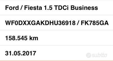 AUTO TENUTA CON MOLTA CURA AUTOCARRO – 4 POSTI - IVA ESPOSTA VETTURA ITALIANA – TARGA : FK 785 GA ULTIMA FOTO ( una parte della fattura d'acquisto ) : ALLESTIMENTO- TELAIO - TARGA ITALIANA - KM - ANNO D'IMMATRICOLAZIONE FORD FIESTA cc 1.5TDCI 75 CV allestimehnto BUSINESS , MAGGIO 2017 , colore argento , con 158566 km certificati , cambio manuale a 5 marce , un solo proprietario TAGLIANDO FATTO a 157379 km il 15/02/2025 REVISIONE DA FARE A MAGGIO 2027 RUOTA DI SCORTA DUE CHIAVI CON TELECOMANDO GOMME QUASI NUOVE AUTO PRONTA ALL’USO - NESSUNA SPESA DA FARE Ottime condizioni generali interne, esterne e meccaniche Garanzia e possibilita' di finanziamenti agevolati SI VALUTANO PERMUTE L'auto è disponibile a Sommatino ( CL ) in viale Fontaine 10( vicino la caserma dei carabinieri ) per qualsiasi vostra prova e controllo conmeccanico di vostra fiducia . Non esitate a contattarmi per qualsiasi altra informazione alla mia email o direttamente al mio cellulare anche whatsapp PREZZO : 6300 euro 1 ANNO DI GARANZIA CONFORMGEST SPA ( COMPLETA ) INCLUSA NEL PREZZO PASSAGGIO DI PROPRIETA' ESCLUSO
