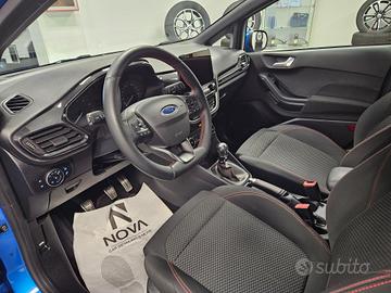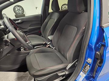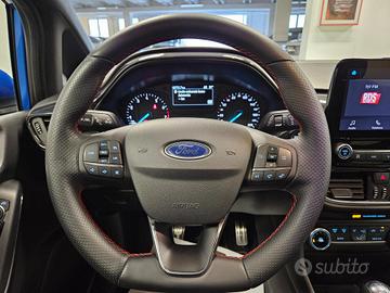 Climatizzatore a controllo automatico (EATC), Vano porta occhiali, Sedile conducente con regolazione a 4 vie, Sedile passeggero con regolazione a 2 vie, Sedili sportivi in tessuto, Console centrale con porta bicchieri, vano portaoggetti e bracciolo, Tappetini anteriori, Sedili posteriori abbattibili 60/40, Volante sportivo Sensico Premium Touch appiattito nella parte inferiore con impunture rosse, Volante ergonomico Sensico Premium Touch, Active Grill Shutter, Clacson bi-tonale, Ford Easy Fuel (sistema di rifornimento carburante senza tappo Ford), Griglia anteriore ST-Line, Paraurti anteriore e posteriore ST-Line, Tecnologia Mild Hybrid, Keyless Start (pulsante di accensione Ford Power), My Key (chiave personalizzabile), Kit Riparazione Pneumatici, Alette parasole conducente e passeggero, Chiusura centralizzata con 2 telecomandi e chiave a scomparsa, Chiusura centralizzata con 2 telecomandi e chiave a scomparsa, Sospensioni sportive,