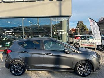 Climatizzatore a controllo automatico (EATC), Sedile conducente con regolazione manuale a 4 vie, Sedile passeggero con regolazione manuale a 2 vie, Volante Sensico Premium Touch a fondo piatto con impunture rosse, Console centrale con vano portaoggetti e bracciolo, Tappetini anteriori con impunture rosse, Sedili posteriori abbattibili 60/40, Clacson bitonale, Griglia anteriore ST-Line, Keyless Start (pulsante di accensione), My Key (chiave personalizzabile), Modanatura portiere nere, Alette parasole conducente e passeggero, Chiusura centralizzata con 2 chiavi a scomparsa, Sospensioni sportive, SYNC 2.5 radio con schermo Touchscreen TFT 8", Bluetooth,funzione mirroring Apple CarPlay, Android Auto, 6 altoparlanti con DAB, Quadro strumenti TFT 4,2" a colori, Computer di bordo, Cerchi in lega da 17", Start & Stop, Retrovisori elettrici in tinta carrozzeria, ST-Line Badge, Terminale Di Scarico Cromato, Fari anteriori abbaglianti, anabbaglianti e fendinebbia a LED, Fari Fendinebbia (OPT OBB), Fari abbaglianti automatici, Fari automatici (acceso/spento), Interni in tessuto sportivo Eton, Cruise control con limitatore di velocità, Sistema di monitoraggio stanchezza del conducente, Hill Start Assist (Assistenza Alla Partenza In Salita), Speed Sign Recognition, Intelligent Speed Assist, Lane Departure Warning, Lane Keeping Aid, Sensori Di Parcheggio Posteriori, Modalità di guida selezionabili (Normal, Eco, Sport), Alzacristalli anteriori e posteriori elettrici,