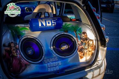 AUTO VENDUTA SENZA IMPIANTO MA CON TUTTI I PANNELLI E CASSONATURA AEROGRAFATA E SENZA I SEDILI SPORTIVI