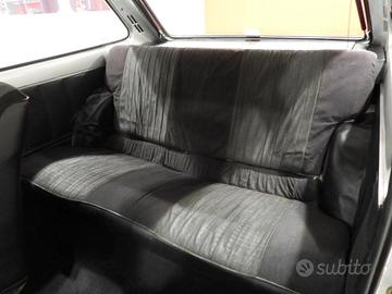 SEDILI IN STOFFA GRIGIA E NERA E VELLUTINO A COSTE E PANNELLI IN SKY NERO, MOQUETTE IN LANA NERA AL PAVIMENTO, VOLANTE A DUE RAZZE ORIGINALE, SPECCHIO ESTERNO LATO GUIDA CROMATO A REGOLAZIONE MANUALE INTERNA