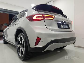 Ford Focus 1.0 Hybrid 125cv Active 08-2023 allestimento “Focus 1.0 EcoBoost Hybrid 125 CV 5p. Active”, alimentazione mild hybrid benzina, cambio manuale a 6 marce, colore Argento metallizzato con tetto nero, unico proprietario che l’ha acquistata nuova il 24.08.2023 presso la Conc. Uff. FORD di Grottammare (AP) “SCIARRA SPA”, manutenzione regolari con la prima eseguita il 16.04.2025 a 29.689km, mentre l’ultima è stata in data 08.04.2026 a 44.519 km presso la Conc. Uff. FORD di Taranto (TA) “APPIASTORE SPA”. Vettura pari al nuovo, davvero particolare e grintosa, molto economica nei consumi grazie al sistema ibrido che permette di percorrere circa 18 km/l, con all’attivo 44.541 km, motorizzata con un 1.0 EcoBoost Hybrid tre cilindri turbo supportato da un alternatore-starter integrato, che funge anche da generatore e motore elettrico ausiliario, mentre il sistema mild hybrid (non richiede ricarica esterna) assiste il motore termico in fase di accelerazione, rendendo la guida più fluida e migliorando le prestazioni ai bassi regimi, eroga 125 cv (91,90 kw), ADATTA A NEOPATENTATI, classe ambientale Euro 6, ottime prestazioni, cambio manuale fluido e preciso. Versione Active con: Barre al tetto nere, Cerchi in lega da 17" diamantati, Chiusura centralizzata con telecomando, Climatizzatore automatico bi zona, Cruise control (acceleratore automatico), Doppio terminale di scarico in stile sportivo (a singola uscita), Emergency Assistant- connessione cellulare, Fari Full LED con luci diurne a LED, Freno di stazionamento elettrico (EPB), Intelligent Speed Assist, Keyless Entry (apertura e chiusura senza chiave), Keyless Start (accensione a pulsante), Lane Keeping Aid ed Alert, Luci posteriori a LED, Modalità di guida selezionabili, My Key (chiave personalizzabile), Paraurti anteriore, posteriore e griglia frontale Active, Passaruota con rivestimento Active Design, Quadro strumenti 4.2" TFT a colori, Sedili posteriori abbattibili 60/40, Sensori di parcheggio anteriori e poster
