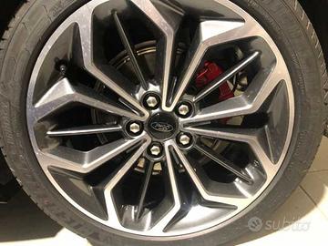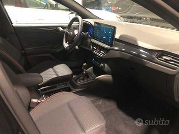 e-Call - Sistema di chiamata di emergenza, Cerchi in lega 18" - ST Line, Ruotino di scorta, Vernice metallizzata (Agate Black), Alzacristalli elettrici anteriori e posteriori, Avvisatore acustico inserimento cintura di sicurezza, Bracciolo posteriore con vano portaoggetti, Cielo interno nero, Clacson bi-tonale, Doppio terminale di scarico in stile sportivo (a singola uscita), Emergency Assistant- connessione cellulare, Ford Pass di connessione per 1 anno (Navig. connessa, Local Hazard Information, Ford Secure, furto), Freno di stazionamento elettrico (EPB), Ginocchiere soffici con impunture rosse, Keyless Start - pulsante di accensione, Kit riparazione pneumatici, Luci ambiente interne, Luci di lettura ant. e post. a LED, Luci posteriori a LED, Maniglie posteriori piegevoli con appendiabiti, Modalità di guida selezionabili, Modanature portiere nere, My Key (chiave personalizzabile), Paraurti anteriore, posteriore sportivo e griglia frontale ST-Line, Poggiatesta posteriore centrale, Privacy Glass, Quadro strumenti con display digitale a colori da 12.3", Retrovisori esterni in tinta carrozzeria, riscaldabili e ripiegabili con luci di cortesia, Rivestimenti dei sedili in tessuto Foundry ST-Line con impunture rosse, Sedili in tessuto con forma a V, Sospensioni sportive, Specchietto retrovisore fotocromatico, Spoiler posteriore in tinta, Spoiler posteriore maggiorato, Supporto per ricarica wireless dello smartphone, SYNC 4 Navigation System con schermo touch 13.2", DAB, mirroring Apple Car Play & Android Auto, Tappetini anteriori e posteriori, USB, Vernice solida (Race Red), Volante sportivo a 3 razze a fondo piatto con impunture rosse Sensico premium Touch, Lane Keeping Alert, Console centrale con bracciolo, Cambio manuale a 6 marce, Cerchi in lega da 17", Chiusura centralizzata con telecomando, Climatizzatore automatico bi-zona, Fordpass Connect (modem 4G), Cruise control, Fari Full LED con luci diurne a LED, Keyless Entry (apertura e chiusura senza chiave), Sedile