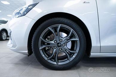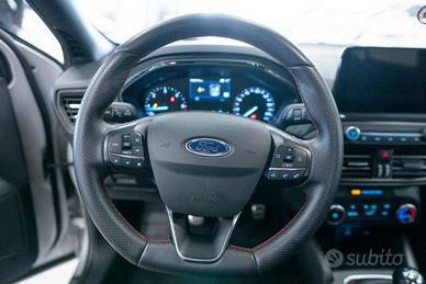 Airbag a tendina - anteriore e posteriore - Airbag laterali - Airbag lato guida e passeggero attivi - Allarme cintura posteriore - Alzacristalli elettrici anteriori e posteriori - Anti-lock Braking System (ABS) - frenata antibloccaggio - Attacchi ISOFIX - Badge ST-Line - Barre al tetto nere - Cerchi in lega da 17" ST-Line - Chiusura centralizzata con comando a distanza - Climatizzatore Automatico Bizona - Computer di bordo - Console centrale con portabicchieri - Cornici fari nere - Cruise Control con limitatore di velocità - ASLD - DAB - Ecomode (modalità di guida eco-sostenibile) - Electric Power-Assisted Steering - EPAS (servosterzo elettrico) - Electronic Stability Control - ESC (controllo elettronico della stabilità) - Electronic parking break con Auto hold (frenatura di parcheggio elettronica) - Emergency Brake Assist - EBA (assistenza alla frenata di emergenza, luci di emergenza automatiche) - Fari Automatici - Fari anteriori proiettori anabbaglianti a LED - Fari fendinebbia a LED con luci di svolta adattive - Freno di stazionamento elettrico - Griglia frontale con inserti ST-Line - Hill Start Assist (Assistenza Alla Partenza In Salita) - Inserti decorativi sportivi - Intelligent Speed Assist - Keyless Start (power button - pulsante di accensione) - Keyless entry (apertura e chiusura senza chiave, solo portiere anteriori) - Kit Riparazione Pneumatici - Lane Keeping Aid - Luci di lettura anteriori e posteriori al LED - Luci diurne LED anteriori - Modalità di guida selezionabile - Modanature portiere nere - MyKey (chiave personalizzabile) - Parasole conducente e passeggero con specchio - Paraurti anteriore e posteriore sportivo, maniglie esterne e spoiler posteriore in tinta - Poggiatesta posteriore centrale - Post impact breaking (azionamento freni automatico ad inizio impatto) - Pre-Collision Assist incluso Pedestrian & Cyclist Detection - Radio SYNC 3 Touch Screen 8" a