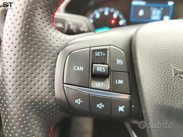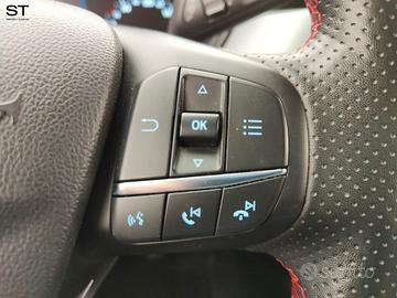 Optional: - Sensori di parcheggio anteriori e posteriori - Fari Full LED con luci diurne a LED - Vernice solida (Race Red) - Rivestimenti dei sedili in tessuto Foundry ST-Line con impunture rosse - Sedili posteriori abbattibili 60/40 - Appoggiatesta posteriori - ABS - Freno di stazionamento elettrico (EPB) - Tappetini anteriori - My Key (chiave personalizzabile) - Keyless Start (accensione a pulsante) - Clacson bi-tonale - Luci di lettura ant. e post. a LED - Quadro strumenti 4.2" TFT a colori - Poggiatesta posteriore centrale - Modanatura portiere nere - Retrovisori esterni in tinta carrozzeria, riscaldabili e ripiegabili - Paraurti anteriore, posteriore sportivo e griglia frontale ST-Line - Doppio terminale di scarico in stile sportivo (a singola uscita) - Cielo interno nero - Sedile anteriore con regolazione manuale a 4 vie e supporto lombare - Sedili in tessuto con forma a V - Volante a 3 razze a fondo piatto con impunture rosse Sensico Premium Touch - Maniglie posteriori piegevoli con appendiabiti - Modalità di guida selezionabili - SYNC 4 Navigation System con schermo touch 13.2", DAB, mirroring Apple Car Play & Android Auto - Avvisatore acustico inserimento cintura di sicurezza - Emergency Assistant- connessione cellulare - Retrovisore interno fotocromatico - Kit riparazione pneumatici - Alzacristalli elettrici anteriori e posteriori - Sospensioni sportive - Spoiler posteriore in tinta - USB - Luci posteriori a LED - Autoradio - Correttore assetto fari - Fendinebbia - Cerchi in lega da 17" - Sedile guida regolabile in altezza - Console centrale con bracciolo - Chiave con transponder - Immobilizzatore - Chiusura centralizzata con telecomando - Airbag guida - Airbag passeggero - Controllo elettronico della trazione - Controllo elettronico della stabilità - Pretensionatore cinture - Indicatore temperatura esterna - Cruise control - Cambio manuale a 6 marce - Climatizzatore automatico bi zona - Tergilunotto