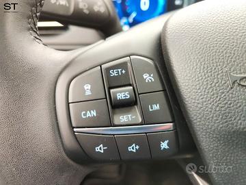Optional: - Privacy Glass - Quadro strumenti con display digitale a colori da 12.3" - Sensori di parcheggio anteriori e posteriori - Fari Full LED con luci diurne a LED - Tetto a contrasto nero - Vernice solida (Race Red) - Interni in tessuto Ray con impunture grigie - Rear View Camera - Sedili posteriori abbattibili 60/40 con vano porta sci - Appoggiatesta posteriori - ABS - Freno di stazionamento elettrico (EPB) - My Key (chiave personalizzabile) - Barre al tetto nere - Clacson bi-tonale - Luci di lettura ant. e post. a LED - Spoiler posteriore maggiorato - Poggiatesta posteriore centrale - Supporto per ricarica wireless dello smartphone - Retrovisori esterni in tinta carrozzeria, riscaldabili e ripiegabili con luci di cortesia - Paraurti anteriore, posteriore e griglia frontale Active - Doppio terminale di scarico in stile sportivo (a singola uscita) - Passaruota con rivestimento Active Design - Cielo interno grigio chiaro - Sedili in tessuto con forma a V - Volante a 3 razze Sensico Premium Touch - Maniglie posteriori piegevoli con appendiabiti - Modalità di guida selezionabili - Sospensioni Active con assetto rialzato - Luci ambiente interne - Ginocchiere soffici con impunture blu - SYNC 4 Navigation System con schermo touch 13.2", DAB, mirroring Apple Car Play & Android Auto - Avvisatore acustico inserimento cintura di sicurezza - Ford Pass di connessione per 1 anno (Navig. connessa, Local Hazard Information, Ford Secure, furto) - Keyless Start - pulsante di accensione - Emergency Assistant- connessione cellulare - Modanature portiere nere - Specchietto retrovisore fotocromatico - Kit riparazione pneumatici - Alzacristalli elettrici anteriori e posteriori - Spoiler posteriore in tinta - Tappetini anteriori e posteriori - Bracciolo posteriore con vano portaoggetti - USB - Luci posteriori a LED - Autoradio - Bluetooth - Fordpass Connect (modem 4G) - Correttore assetto fari - Fendinebbia - Cerchi in lega da 17