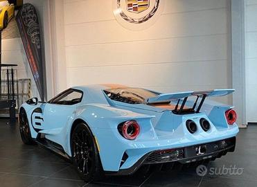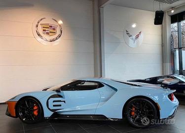 Ford GT Gulf 69 Heritage Edition, pacchetto grafico Roundel 69 Heritage Edition, cerchi in fibra di carbonio a vista lucida da 20", pinze freno arancioni 69 Heritage, pacchetti esterni in fibra di carbonio a vista con finitura lucida, impianto di scarico in acciaio, dadi ruota in titanio, volanti esclusivi 69 Heritage, ancoraggi per cinture di sicurezza a 6 punti. Modello europeo con certificato di conformità. Il veicolo è completamente rivestito con pellicola protettiva antisasso.