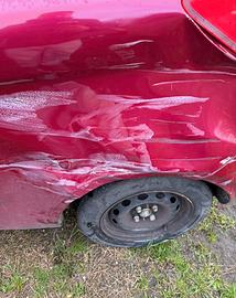 Auto incidentata lato posteriore sinistro (lato guidatore) con ruota piegata.
