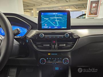 Luce ambiente interna a LED, Sedile guida con regolazione manuale 8 vie e supporto lombare, Sedile passeggero con regolazione manuale 8 vie e supporto lombare, Sedili posteriori scorrevoli (avanti/indietro), Volante ergonomico in pelle regolabile in altezza e profondità, Console centrale con bracciolo, portabicchieri, Console con luci di cortesia e vano porta occhiali, Tappetini anteriori e posteriori, Schienale sedile posteriore frazionabile e reclinabile 60:40, Tendina copribagaglio, Pomello del cambio in pelle, Climatizzatore automatico bi-zona, Active Grill Shutter, Easy Fuel - sistema Ford di rifornimento senza tappo, Eco Mode (modalità di guida ecosostenibile), Tasche posteriori sedile conducente e passeggero, Keyless entry (apertura e chiusura senza chiave), Keyless Start (pulsante di accensione), Kit Riparazione Pneumatici, Griglia anteriore design Titanium con profilo cromato, Modanature esterne e passaruota neri, Soglie battitacco, Quadro strumenti con display digitale a colori da 12.3", MyKey (chiave personalizzabile), Chiusura centralizzata con comando a distanza, SYNC 3 Radio DAB, Touch screen TFT 8", Navigatore, 6 altoparlanti, USB, Comandi al volante, E-shifter: cambio con selettore rotativo, Cerchi in lega da 17", FordPass connect (modem 4G), Start & Stop, Retrovisori in tinta carrozzeria a regolazione elettrica, ripiegabili e riscaldabili con indicatori di direzione, Spoiler posteriore, Barre longitudinali al tetto, Doppio terminale di scarico, Fari anteriori a led (abbaglianti alogeni), Luci posteriori a LED, Regolazione assetto fari manuale, Fari Fendinebbia, Fari automatici (auto headlamp), Follow me home (luci a spegnimento ritardato), Luci diurne a LED, Sedili in tessuto, ABS - Anti-Lock Braking System (frenata antibloccaggio), Airbag anteriori conducente e passeggero (con funzione di disattivazione lato passeggero), Airbag laterali conducente e passeggero, Airbag a tendina anteriori e posteriori,