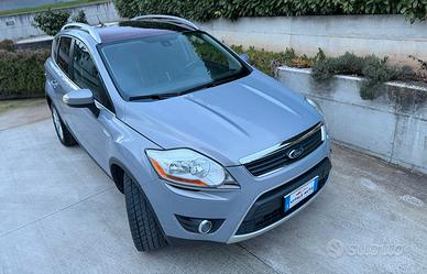 Vendo Ford Kuga 2.0TDCI 163 CV 4WD Titanium Euro5, cambio manuale 6 marce, KM 159000 tagliandati Ford certificati. Anno 2012. Optional: Tetto panoramico. Sistema Key Free. Computer di bordo, impianto stereo originale, volante in pelle con comandi, vetri elettrici anteriore e posteriori, vetri posteriore privacy, ABS con EDB, ESP, TCS Airbag, climatizzatore automatico bizona, cerchi in lega, fendinebbia, portellone posteriore sdoppiato, cruise control,