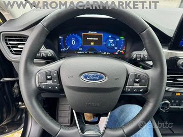 Luce ambiente interna a LED, Sedile guida con regolazione manuale 8 vie e supporto lombare, Sedile passeggero con regolazione manuale 8 vie e supporto lombare, Sedili posteriori scorrevoli (avanti/indietro), Volante ergonomico in pelle regolabile in altezza e profondità, Console centrale con bracciolo, portabicchieri, Console con luci di cortesia e vano porta occhiali, Tappetini anteriori e posteriori, Schienale sedile posteriore frazionabile e reclinabile 60:40, Tendina copribagaglio, Pomello del cambio in pelle, Climatizzatore automatico bi-zona, Active Grill Shutter, Easy Fuel - sistema Ford di rifornimento senza tappo con apertura elettrica, Eco Mode (modalità di guida ecosostenibile), Tasche posteriori sedile conducente e passeggero, Keyless entry (apertura e chiusura senza chiave), Keyless Start (pulsante di accensione), Kit Riparazione Pneumatici, Griglia anteriore design Titanium con profilo cromato, Modanature esterne e passaruota neri, Soglie battitacco, Quadro strumenti con display digitale a colori da 12.3", MyKey (chiave personalizzabile), Chiusura centralizzata con comando a distanza, SYNC 3 Radio DAB, Touch screen TFT 8", Navigatore, 6 altoparlanti, USB, Comandi al volante, E-shifter: cambio con selettore rotativo, Cerchi in lega da 17", FordPass connect (modem 4G),