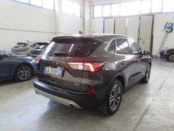 Ford Protect 5 anni/70000 Km, ABS (Sistema antibloccaggio in frenata), Airbag frontale guidatore, Airbag laterali lato guida e passeggero, Airbag frontale lato passeggero con pulsante di disattivazione, Airbag a tendina anteriori e posteriori, Co-Pilot Pack, Hands Free Liftgate (Apertura e chiusura del bagagliaio senza mani), Privacy Glass, Ruotino di scorta, Vernice metallizzata Magnetic Grey, Active Grill Shutter, Alzacristalli elettrici anteriori e posteriori, Attacchi ISOFIX sui 2 sedili post. esterni, Cavo di ricarica per presa domestica (2,3 kW), Cavo di ricarica per stazione pubblica, tipo 2 a tipo 2, Chiusura elettrica portiere posteriori (sicurezza bambini), Consolle con luci di cortesia e vano portaocchiali, Doppio terminale di scarico, Easy Fuel (Sistema di rifornimento senza tappo) ad apertura elettrica, eCall (chiamata d'emergenza via modem), ECOmode (modalità di guida ecosostenibile), ESC (controllo elettronico della stabilità) + TCS (controllo elettronico della trazione), Fari anteriori alogeni, Follow me home (luci a spegnimento ritardato), Forward Collision Warning (Avviso pericolo di urto frontale), Freno di stazionamento elettrico (EPB), Griglia anteriore design Titanium con profilo cromato, Hill Start Assist (Assistenza alla partenza in salita), Intelligent Speed Assist (Limitatore intelligente di velocità), Keyless Start (accensione a pulsante), Lane Keeping Aid (mantenimento corsia) con Road Edge Detection, Luci ambient interne a LED, Luci diurne a LED, Modalità di guida selezionabili (5 modalità di guida: Normale/Eco/Sport/Active/Trail), Modanature esterne e passaruota neri, My Key (chiave personalizzabile), Post impact breaking (azionamento freni automatico a inizio impatto), Pre-Collision Assist (PCA) con Pedestrian & Cyclist detection, Presa di alimentazione 12V nel vano bagagli, Quadro strumenti con display analogico da 6.5" a colori, Retrovisore interno fotocromatico, Retrovisori elettrici ripieg. e riscaldati, in tinta carrozz. e indi..
