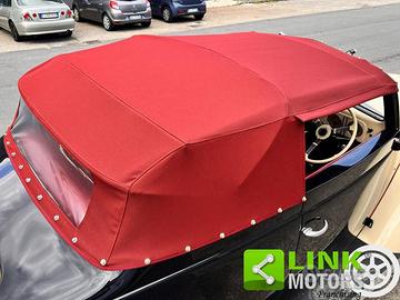 Carrozzeria bicolore beige e nero, con dettagli impeccabili e capote in tela rossa