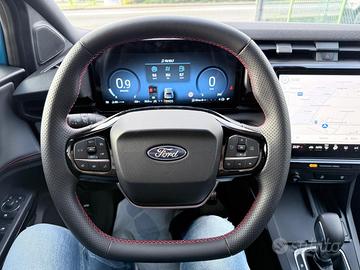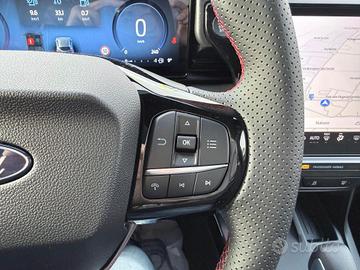 Climatizzatore a controllo automatico EATC, Console centrale con bracciolo scorrevole e vano portaoggetti, Ford megabox - vano di carico aggiuntivo nel bagagliaio, Sedile passeggero con regolazione manuale a 2 vie, Cielo interno scuro, Tappetini anteriori Premium, Sedile guida con regolazione lombare, Volante sensico traforato, Sedile guida con regolazione manuale a 4 vie, Active grille shutter, Eco Coach, Integrated vehicle dynamics (IVD), Modem 5g, Keyless Start - pulsante di accensione, Kit Riparazione Pneumatici, Console premium con inserti in vinile, Griglia frontale st-line design, Modanature in tinta, Pedaliera alluminio, Soglie battitacco alluminio, Digital cluster - quadro strumenti digitale da 12,8", 2 USB, sound system con 6 altoparlanti, Sospensioni sportive, Sync 4 con touchscreen da 12", Cerchi in lega da 17" ST-Line, Retrovisori con regolazione elettrica, riscaldabili con indicatore di direzione integrato, ST-Line Badge,
