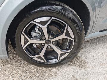 Ford Puma in versione ST-Line, dotata di clima automatico, sound system con display touch da 12", vivavoce bluetooth SYNC 4 con comandi vocali e chiamata d'emergenza, doppia presa USB, streaming audio integrato, radio DAB, sistema di navigazione, sistema mirroring per interfaccia smartphone, modem 4G, volante multifunzione in pelle, computer di bordo, quadro strumenti digitale, cruise control con limitatore di velocità intelligente, riconoscimento segnali stradali, controllo elettronico della carreggiata, frenata d'emergenza assistita, sensore luci, ricarica wireless per smartphone, retrovisori esterni regolabili elettricamente, alzacristalli posteriori elettrici, bracciolo anteriore, sedile posteriore sdoppiato 60/40 con poggiatesta, vano bagagli con doppio fondo, sensori di parcheggio anteriori e posteriori,vetri posteriori oscurati, cerchi in lega diamantati da 17", fendinebbia anteriori con funzione cornering, fari e luci diurne a led.