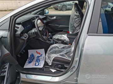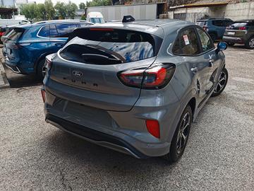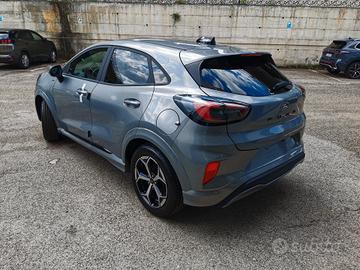 Ford Puma in versione ST-Line, dotata di clima automatico, sound system con display touch da 12", vivavoce bluetooth SYNC 4 con comandi vocali e chiamata d'emergenza, doppia presa USB, streaming audio integrato, radio DAB, sistema di navigazione, sistema mirroring per interfaccia smartphone, modem 4G, volante multifunzione in pelle, computer di bordo, quadro strumenti digitale, cruise control con limitatore di velocità intelligente, riconoscimento segnali stradali, controllo elettronico della carreggiata, frenata d'emergenza assistita, sensore luci, ricarica wireless per smartphone, retrovisori esterni regolabili elettricamente, alzacristalli posteriori elettrici, bracciolo anteriore, sedile posteriore sdoppiato 60/40 con poggiatesta, vano bagagli con doppio fondo, sensori di parcheggio anteriori e posteriori,vetri posteriori oscurati, cerchi in lega diamantati da 17", fendinebbia anteriori con funzione cornering, fari e luci diurne a led.